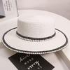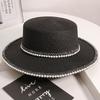 Retro Pearl Lace Flat Top Straw Hat Trendy Women's Summer Outing Beach Sun Protection and Sunshade Hat Beach Hat
