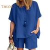 Introducing our stylish two piece set crafted from a mix of cotton and linen, ensuring breathability and comfort throughout the day. The loose fit design not only complements your silhouette but also offers maximum ease of wear. This casual two-piece set in a simple solid color is versatile and suitable for various body types and age groups.