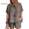 Breathable Cotton Linen: Crafted from a mix of cotton and linen, this women's two-piece set ensures breathability and comfort all day long, keeping you feeling dry.