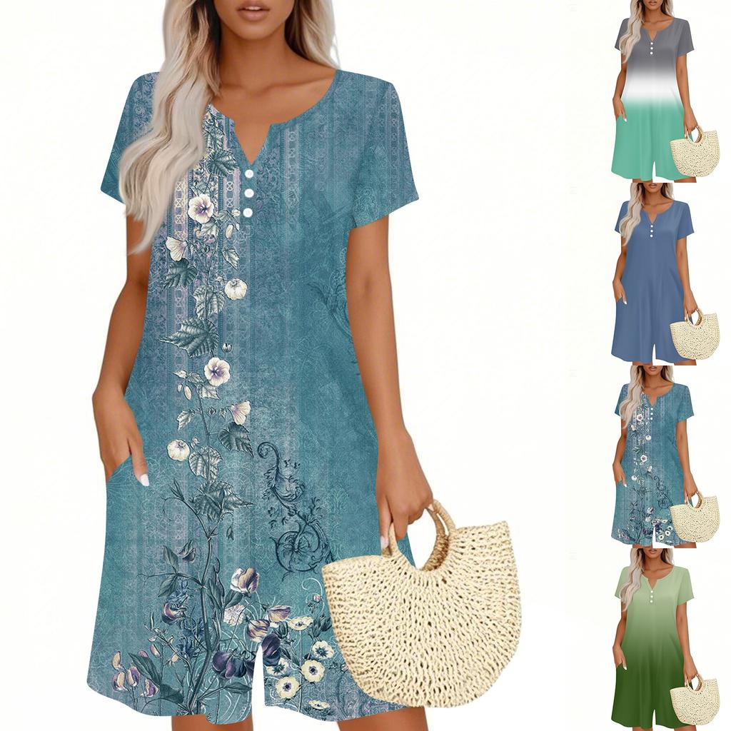 Womens Casual Short Sleeve Jumpsuit Fashion Top Jumpsuit Shorts Rompers With Pockets — buy online with free worldwide shipping!