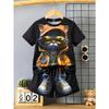 Little Boy Casual Simple Cartoon Fashion Handsome Cool Boy Pattern Short Sleeve Round Neck 2-piece Suit Suitable for Summer — buy online with free worldwide shipping!