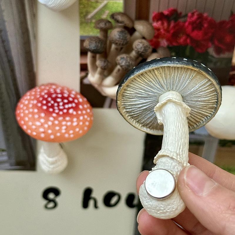 Designed in the shape of a three-dimensional mushroom, this refrigerator sticker is and colorful. It has a built-in magnets design that is strong and durable and stick firmly to the metal surfaces.