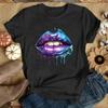 Lips Printed T-Shirts For Women Summer Tee Shirt Femme Casual Short Sleeve Round Neck Tops T-Shirts