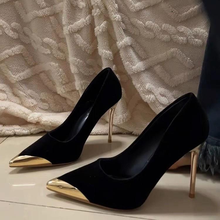 Light luxury black suede high heels women's thin heels 2025 new autumn and winter banquet temperament imperial sister shallow mouth pointed single s — buy online with free worldwide shipping!