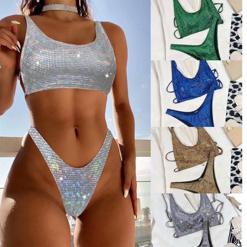 New European and American Fashion Swimwear Beach Bikini Solid Color Sexy Ladies Split Swimsuit Triangle Bikini