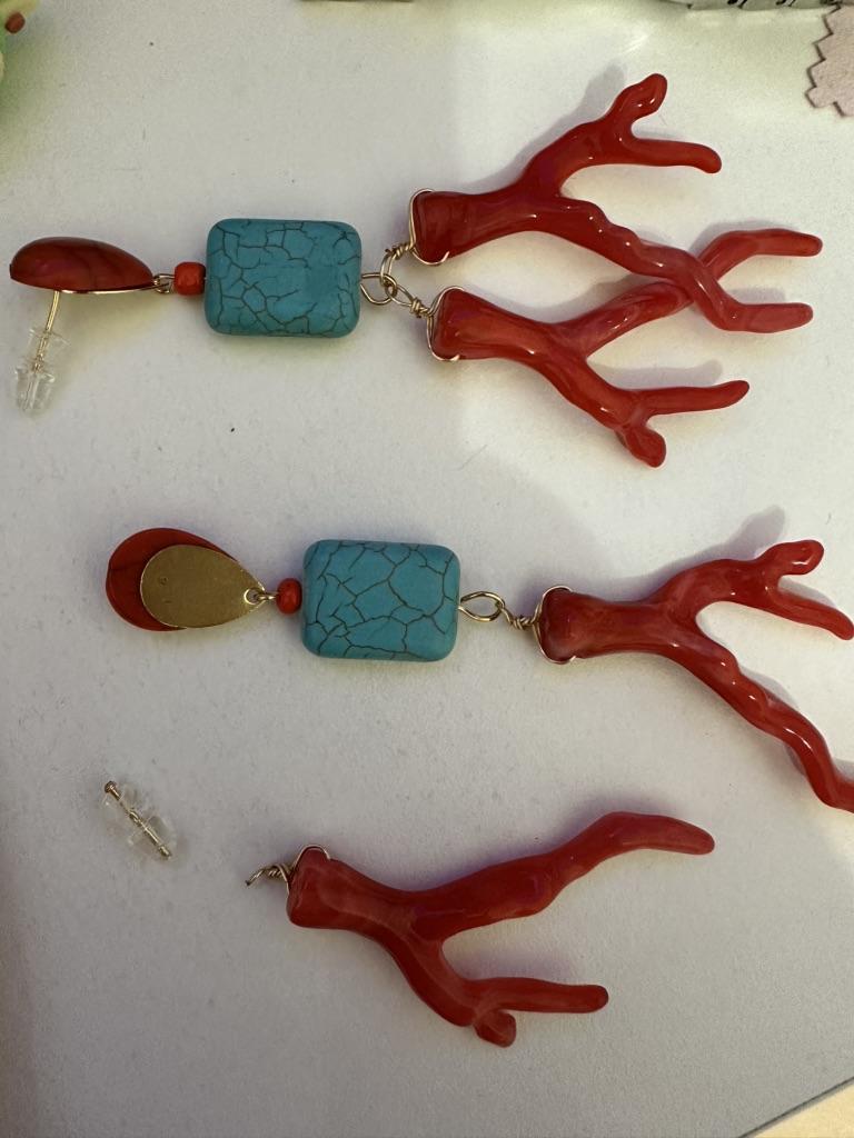Summer New Blue Turquoise Stone Red Coral Earrings Women's Jewelry Beach Vacation Ethnic Style Jewelry Drop Earrings — buy online with free worldwide shipping!