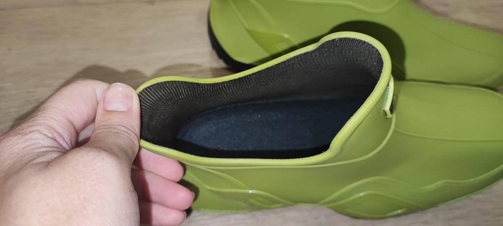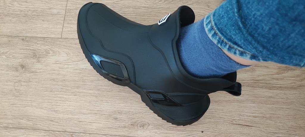 Does not correspond to the advertisement at all, the sole is thin, almost flat, the tread does not grip on a wet road, it slips on the foot, does not hold its shape...terrible chemical smell...just an ordinary galosh, the only plus - they fit in size