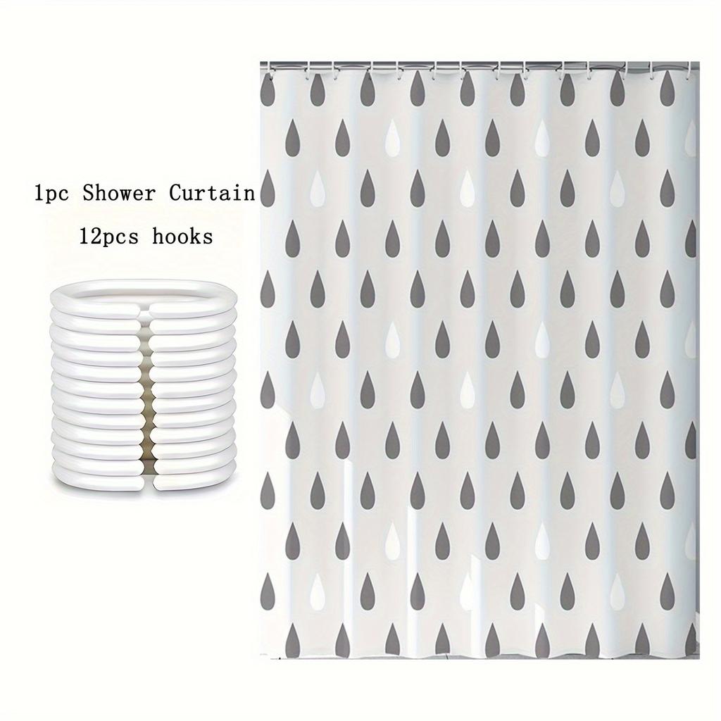 1 Raindrop Shower Curtain with Grey and White Water Drop Pattern. This Thickened Pure EVA Translucent Printed Bathroom Curtain Measures 72x72 Inches