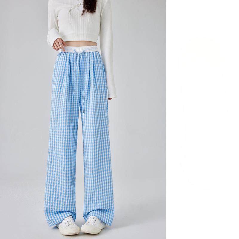 Pink Plaid Wide-leg Pants for Women In Spring and Summer Thin New High-waist Drape Straight-leg Casual Pants Loose Yamamoto Pants — buy online with free worldwide shipping!