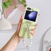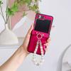 PU Leather Cover with Glitter Pearl Wrist Chain Strap Bracelet For Samsung Galaxy Z Flip 6 5 4 3 Flip6 Flip5 Flip4 Flip3 5G Hard Plastic Shockproof Hinge Protective Phone Case