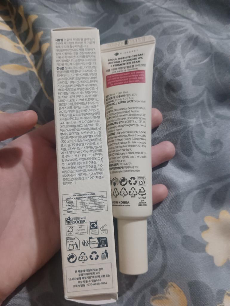 Ingredients : Purified water, glycerin, dipropylene glycol, caprylic/capric triglyceride, 1,2-hexanediol, butylene glycol dicaprylate/dicaprate, niacinamide, pentaerythrityl tetraethylhexanoate, cetearyl alcohol, butylene glycol, cetearyl olivate, sorbitan olivate, hydrogenated lecithin, macadamia seed oil, carbomer, tromethamine, propanediol, glyceryl stearate, cholesterol, polyglyceryl-10 oleate, ethylhexylglycerin, adenosine, rapeseed sterol, phytosteryl/behenyl/octyldodecyl lauroyl glutamate, retinol (400 ppm), silica, disodium EDTA, aluminum/magnesium hydroxide stearate, Lactobacillus/Ginseng Root Ferment Filtrate, Lactobacillus/Rice Ferment, Lactobacillus/Soybean Ferment Extract (200 ppm), Yeast/Yulmu Seed Ferment Filtrate, Yeast/Potato Extract Ferment Filtrate, Tocopherol, Potassium Cetyl Phosphate, Pentaerythrityl Tetra-Di-t-Butyl Hydroxyhydrocinnamate, Sodium Hyaluronate, Burdock Root Extract, Cnidium Officinale Root Extract, Yam Root Extract, Peony Root Extract, Rehmannia Root Extract, 3-0-Ethyl Ascorbic Acid, Bakuchiol, SA Tea-Oligopeptide-1, SA Tea-Oligopeptide-2, SH-Polypeptide-1