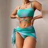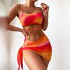 Swimsuit Women's Split Three Piece Set Tie Dye Lace Up Sexy Bikini Sets For Female Halter Drawstring Swimwear