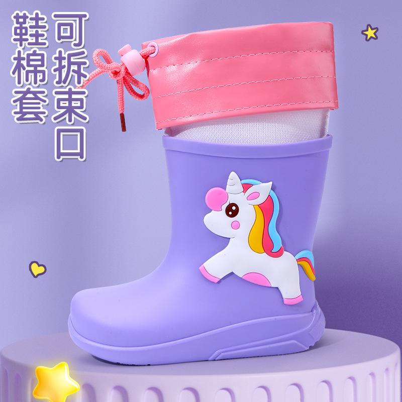 Children's Rain Shoes Boys and Girls Bundle Mouth Cotton Non-slip Water Shoes Four Seasons Cute Cartoon Rain Boots Children's Rubber Shoes