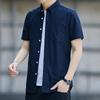 Ice Silk Short-sleeved Shirt Men's Summer Thin Loose Blue Casual Shirt