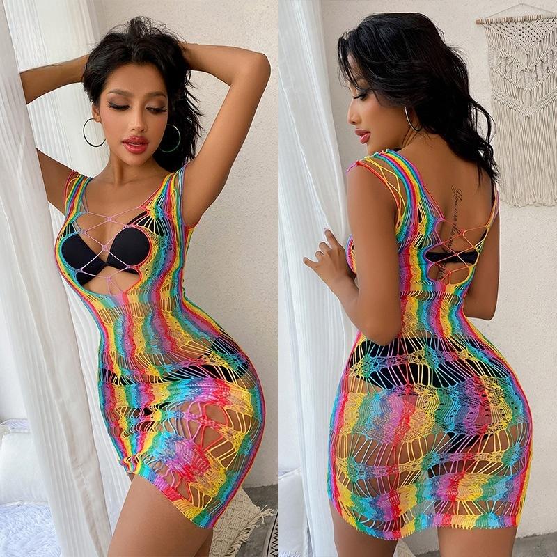 Colorful Stripes Sexy Lingerie For Women Porn Fishnet Bodysuit Female Sex Crotchless Hollow Teddy Bodystockings Erotic Adult Female Sex Game Costume — buy online with free worldwide shipping!