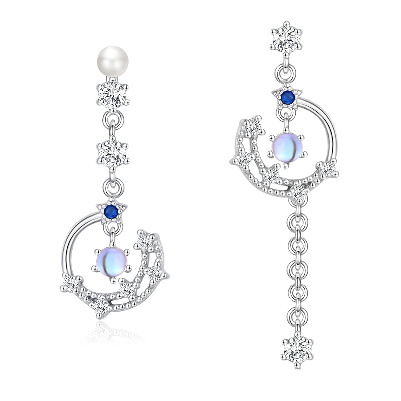 [Star & Moon Motif] Women's earrings made with a moon and star motif. A blue cat's eye stone and small zirconia are combined to create a dream-like sparkle that reflects light. It makes the ears more colorful.