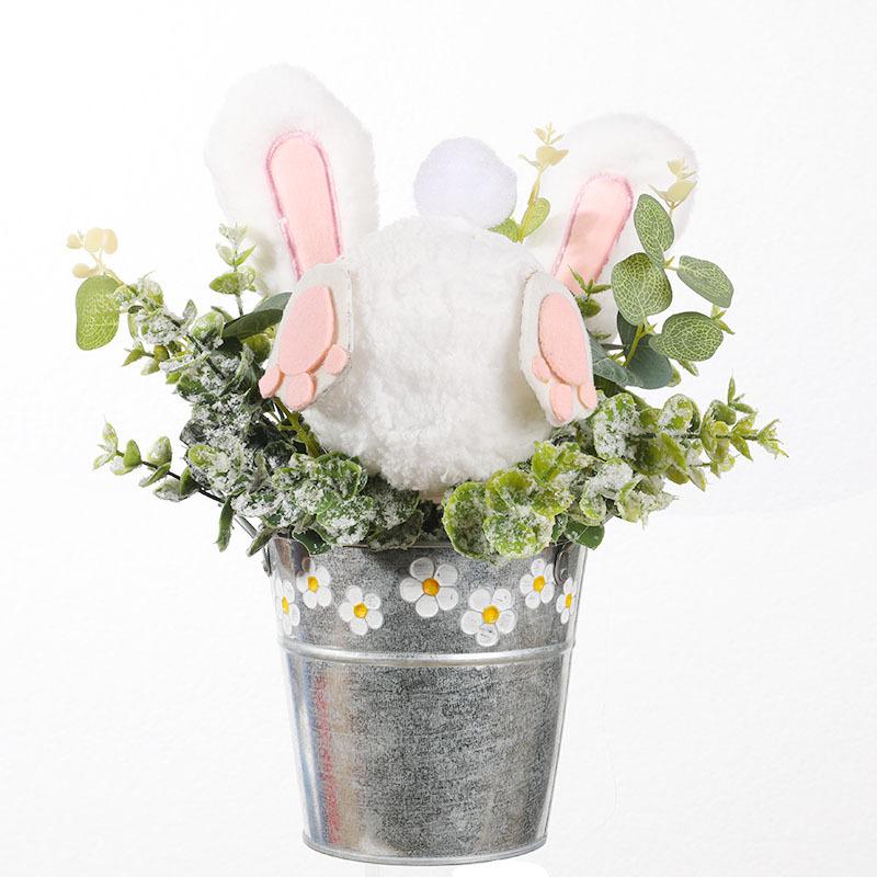 Resurrection Rabbit Decorative Potted Plant Tabletop Ornament Wreath Pendant Easter Cartoon Theme Simulation Plant Door Hanging