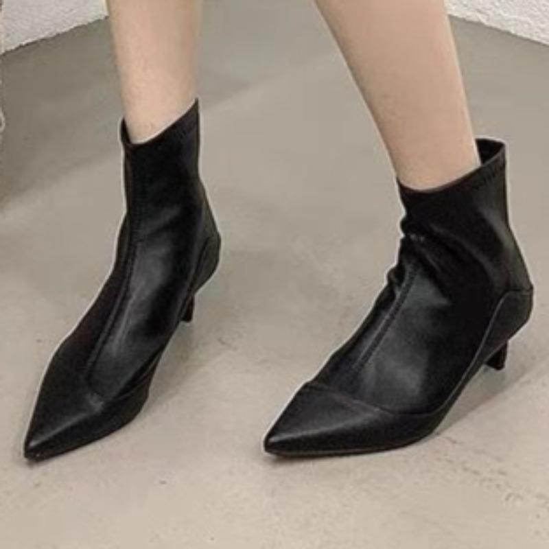 French Pointed Short Boots for Women 2025 Spring and Autumn New Low Heel Fashionable Soft Leather Versatile Bare Boots — buy online with free worldwide shipping!