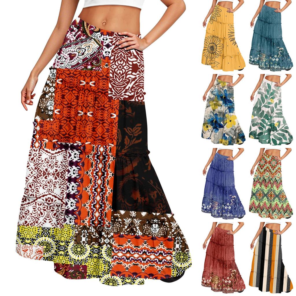 Women's printed elastic waist loose hem long skirt — buy online with free worldwide shipping!