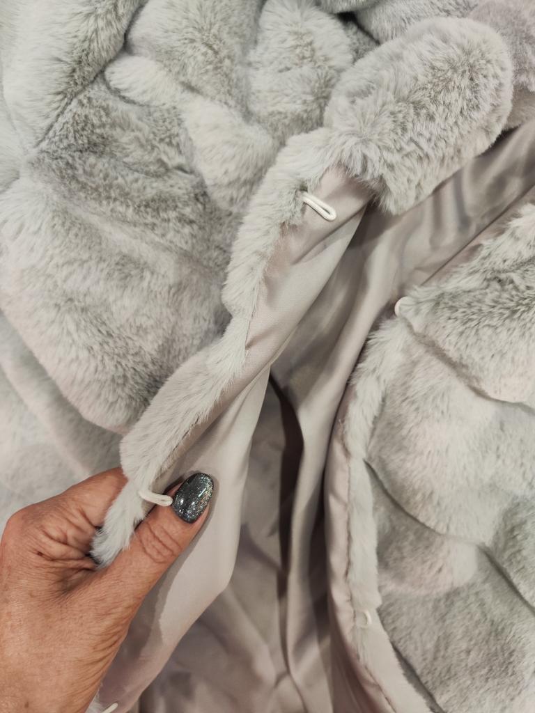 I took L for size M, I should have taken 2 sizes larger. I gave it to my niece. The fasteners are just hooks, they keep coming undone, I need to put others. The coat is very thin for a warm autumn, it's not even a coat, but more like a fur jacket with lining. The fur is soft, thin, plush, I had such a blanket, only without lining.