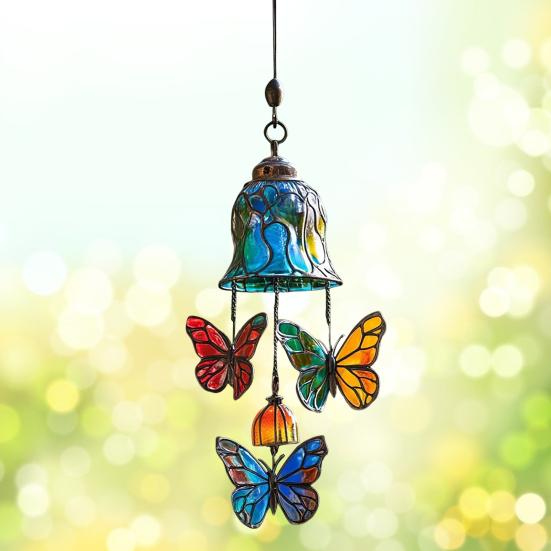Designed to withstand various weather conditions, this wind chime will continue to add beauty to your garden year-round. Whether hung in your backyard, patio, porch, or even indoors by a sunny window, this enchanting wind chime is sure to captivate your guests and spark curiosity. Elevate your outdoor decor with this magical butterfly wind chime today!