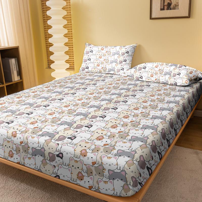1 Cartoon Fun Animal Printed Matte Fitted Sheet, Bedroom Printed Bed Cover, Bedding (Excluding Pillowcases)
