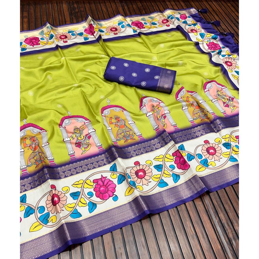 work :- pure hd3d digital kalmkari,pichvai,pen kalam kari printed with pallu fancy tassels ( fumka)
