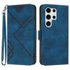 For Samsung Galaxy S25 Ultra Wallet Case Line Imprinted PU Leather Phone Cover with Strap