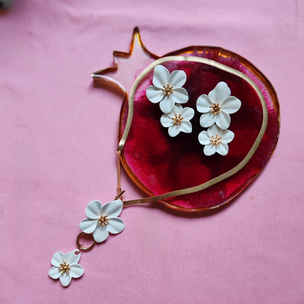 Elegant Floral Design: Adorn yourself with this exquisite floral necklace and earrings set crafted with precision and elegance, a must-have for any jewelry enthusiast.