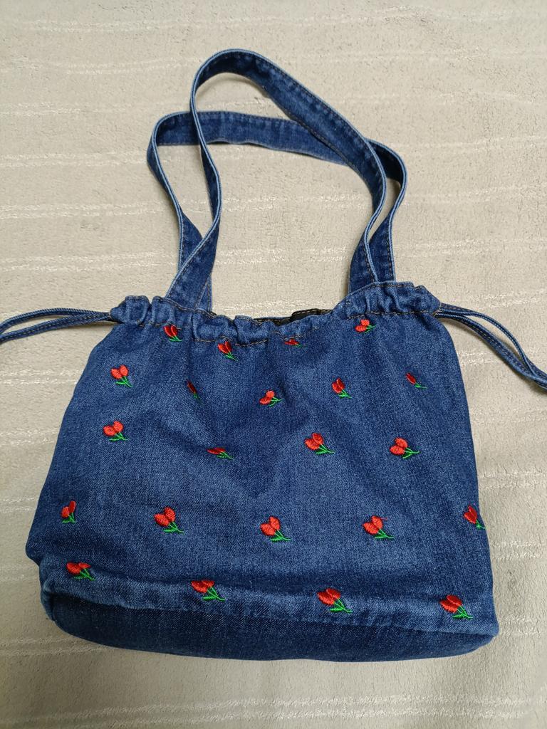 Very cute little bag, just what you need for summer clothes and a beach set. Beautiful satin stitch embroidery.