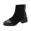 New Suede Women's Shoes 2025 Autumn and Winter Korean Version Fashion Front Zipper Middle Heel Short Boots Women's Korean Version Women's Casual Women