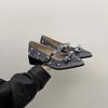 French Bow Mary Jane Shoes Women's 2025 New Beautiful Skirt Pointed Thick Heel Rhinestone Shoes