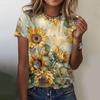 Ladies' Loose Summer Elegant Retro Women's Clothing 3D Printed Sunflower Top Short Sleeved T-shirt