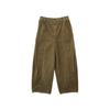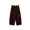 2024 Autumn/Winter Retro Earth Tone Corduroy Carrot Pants with Fur Trim and Elastic Waist