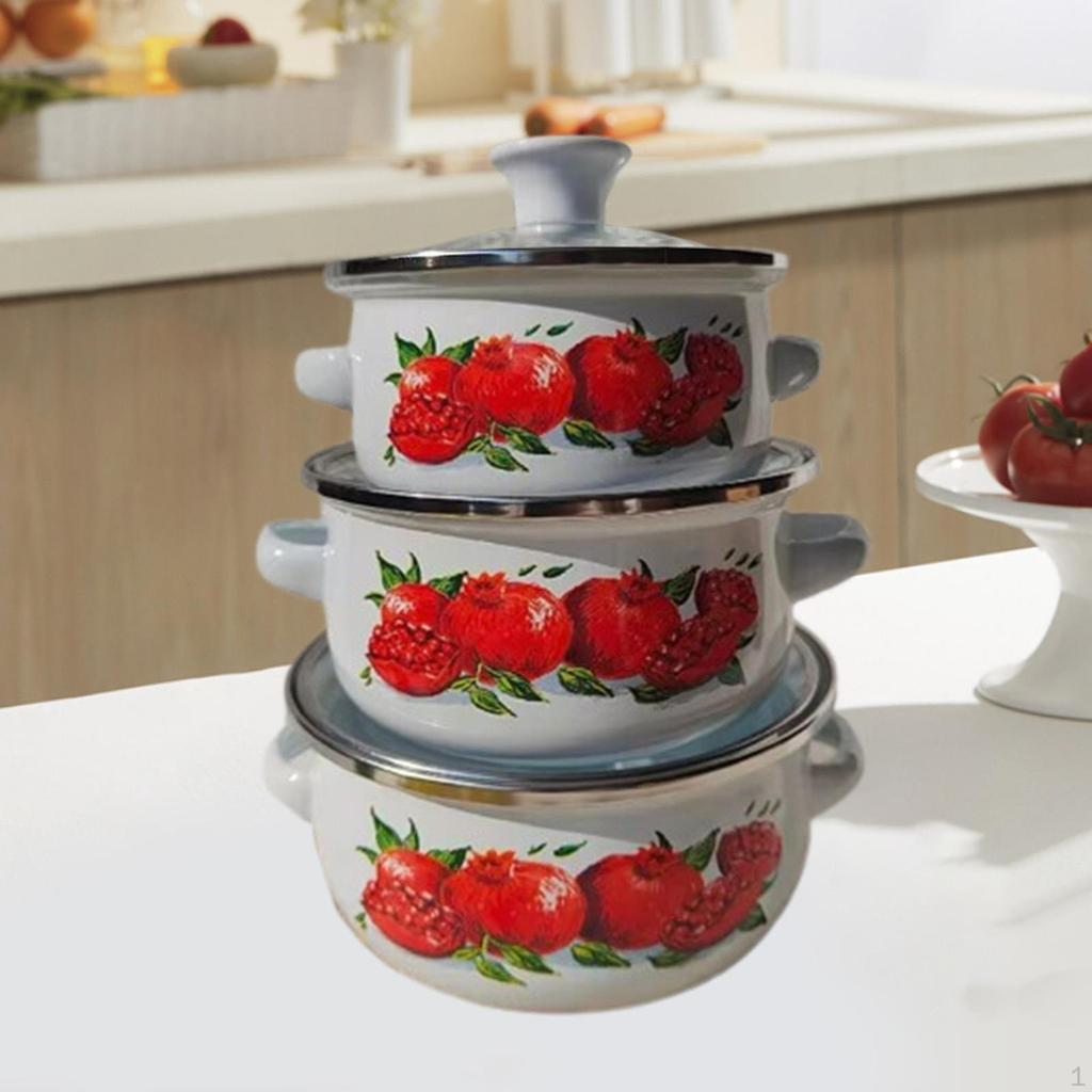 - 【Compact 3Pcs Set】: The set includes three pots with diameters of 12cm/4.72inch, 14cm/5.51inch, 16cm/6.30inch respectively. Made from enamel material, this cookware set is both portable and ideal for home or school use