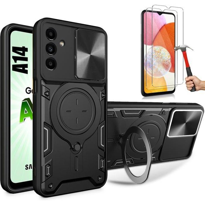 Case for Samsung Galaxy A14 4G-5G - Black - Military protection - Anti-slip - 2 Tempered Glasses — buy online with free worldwide shipping!