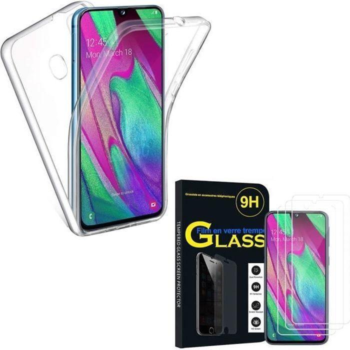 Coque Silicone - Samsung - Galaxy A40 - Protection intégrale - Transparent - 3x Verre Trempé