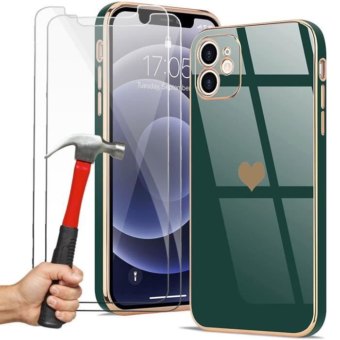 Protective Case - Luxury - for iPhone 12 - Night Green - Heart Pattern - Flexible TPU — buy online with free worldwide shipping!