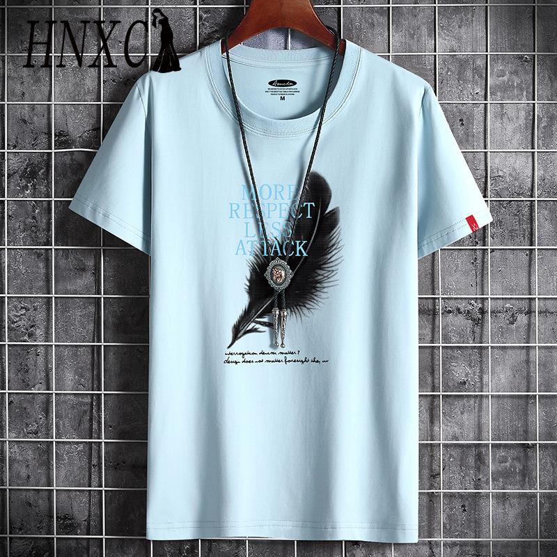 HNXC Cotton Short Sleeve T-shirt Men's Fashion Loose Half Sleeve Shirt Printed Compassionate Shirt