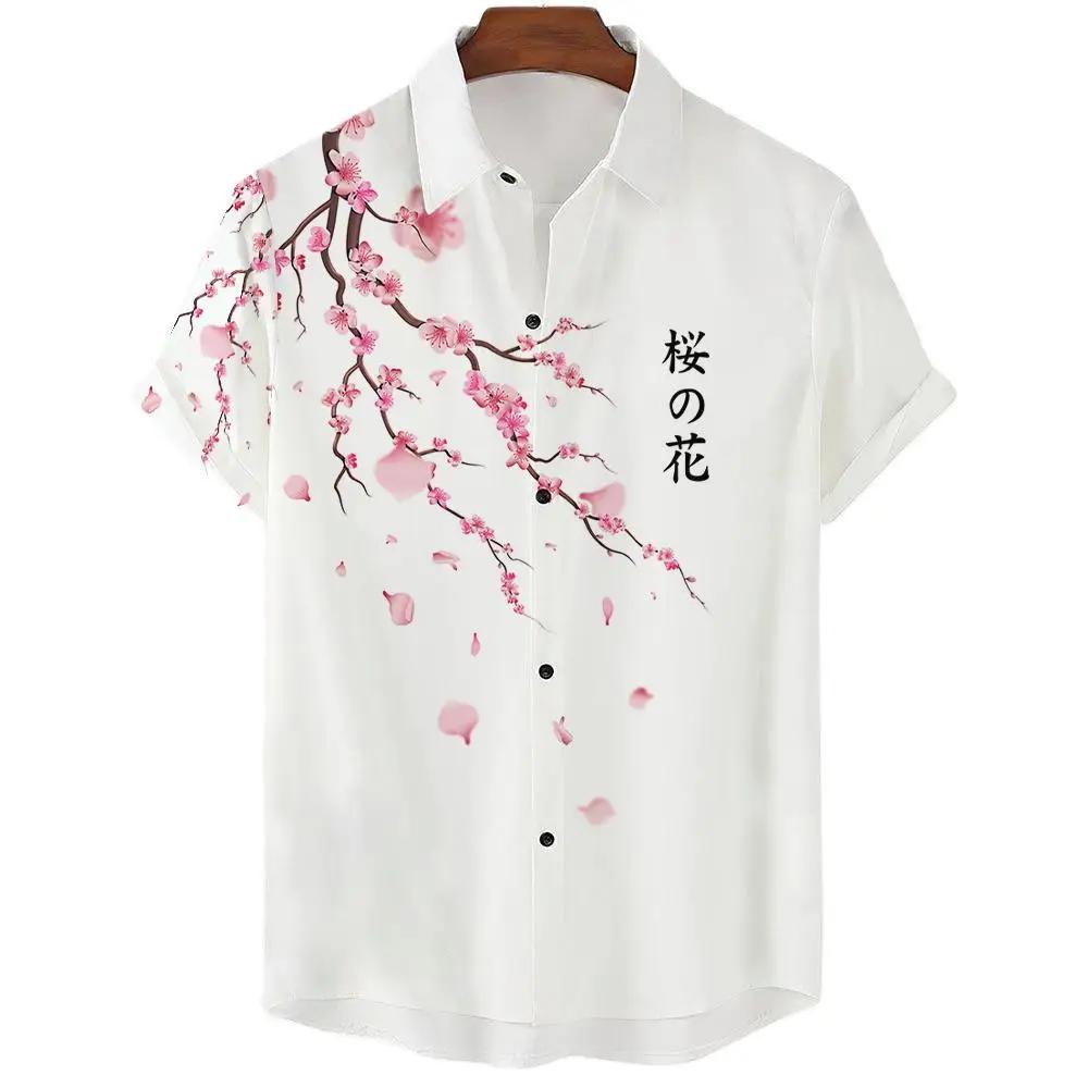 Japanese Aesthetic Cherry Blossom Print Men's Shirt Fashionable Luxury Lapel Button-down Shirt Casual Short-sleeved Tops — buy online with free worldwide shipping!