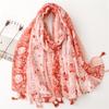Cherry Blossom Print Scarf for Women - Lightweight, Sheer Polyester Shawl with Red Cherry & Leaf Design, Perfect for Spring & Summer Outings