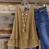 2025 Women's Summer New Solid Color Casual Sleeveless U-Neck Fake Two Layers T-Shirt