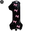 32inch Aluminum Film Black Bow Number Balloons Ribbon Bows Balloons for Birthday Decoration Supplies Anniversary Number Balloons