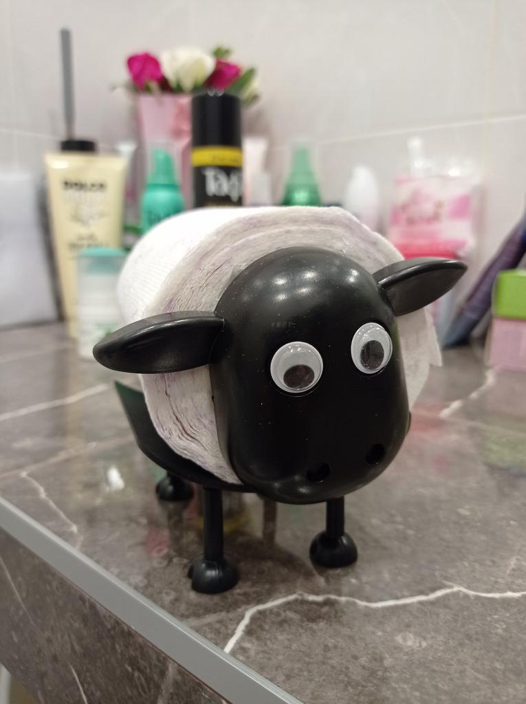 Cute lamb - toilet paper holder. True, the neck is a bit thinner than the paper roll.