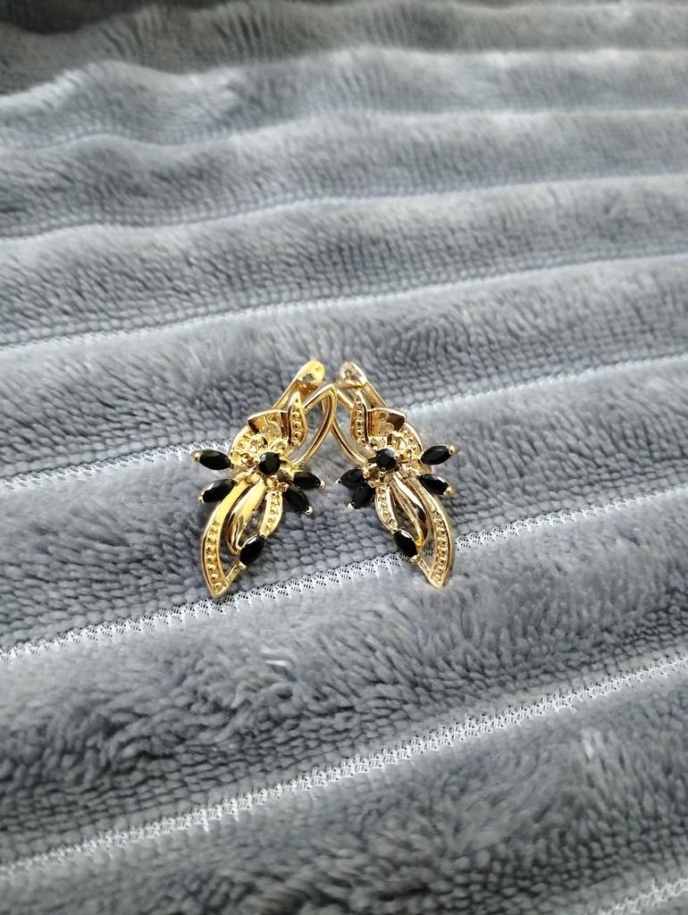 1 Pair Black Zircon Flowers Drop Earrings for Women Gold Color Wedding Ethnic Style Jewelry — buy online with free worldwide shipping!