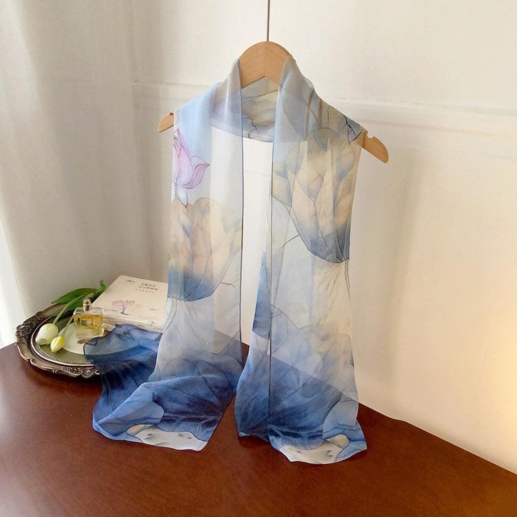 Spring Style Cicada Wings Long Silk Scarf for Women Spring and Autumn Thin Style Fashionable and Versatile Georgette Multi-color Printed Long Scarf