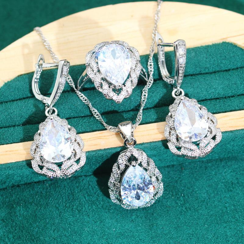Water Drop Jewelry Europe and The United States Hot Anti-allergy Zircon Necklace Earring Jewelry Set