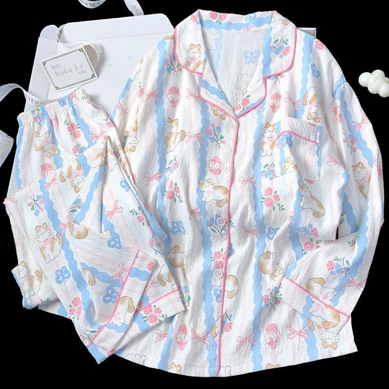 Spring and Autumn Women's Pajamas Homewear Set Girls Sweet Striped Clouds Cotton Homewear Students Cute Pajamas Homewear Set — buy online with free worldwide shipping!