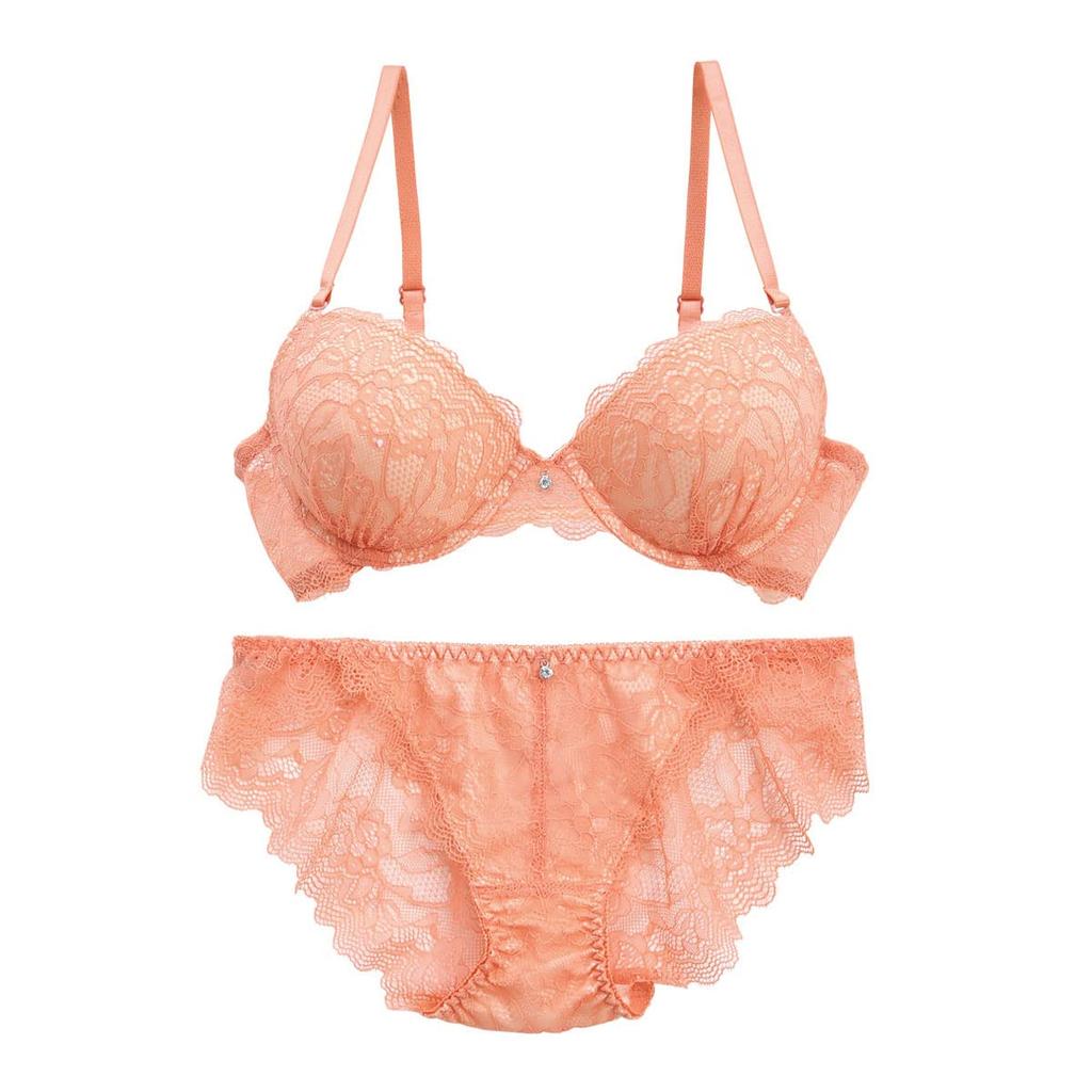 The all-lace design is just the right amount of sexy, but the stylish single color makes it trendy too. It's also inexpensive, so it's easy to use on a daily basis! This bra and panty set will make your slightly greedy wishes come true.