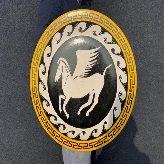 Authentic Design: Inspired by ancient Greek hoplite shields, it features a detailed Pegasus emblem and an aged finish for a battle-hardened look.